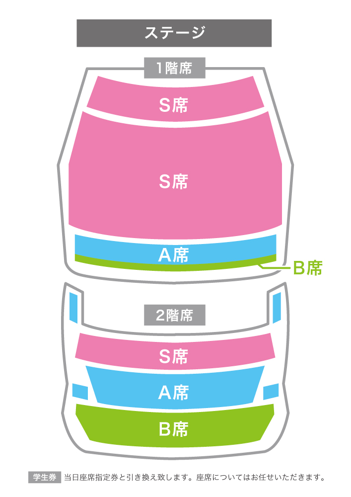 公演によって、会場の構造・お客様の安全性を考慮し、当日当社スタッフが当社指定のスペースにご案内させていただきます。その際、会場や公演によってはステージが見えづらい場合もございます。その場合のチケットの払戻しをお受けすることができませんのでご了承ください。